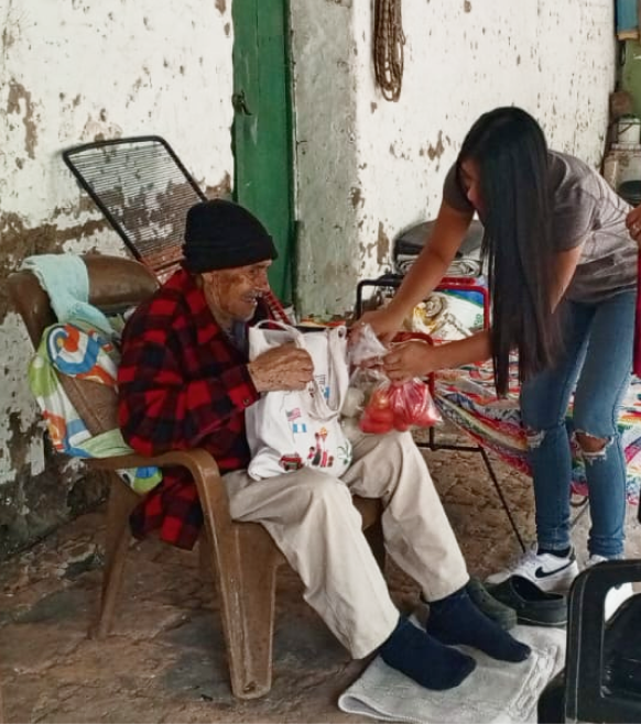 Permite entregar una bolsa de alimentos a una familia en Guatemala.